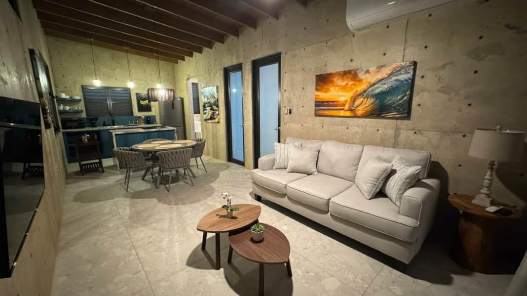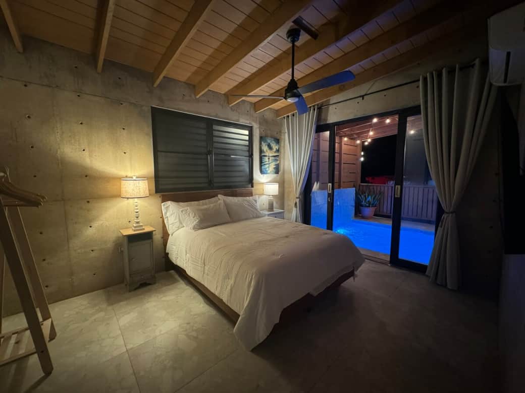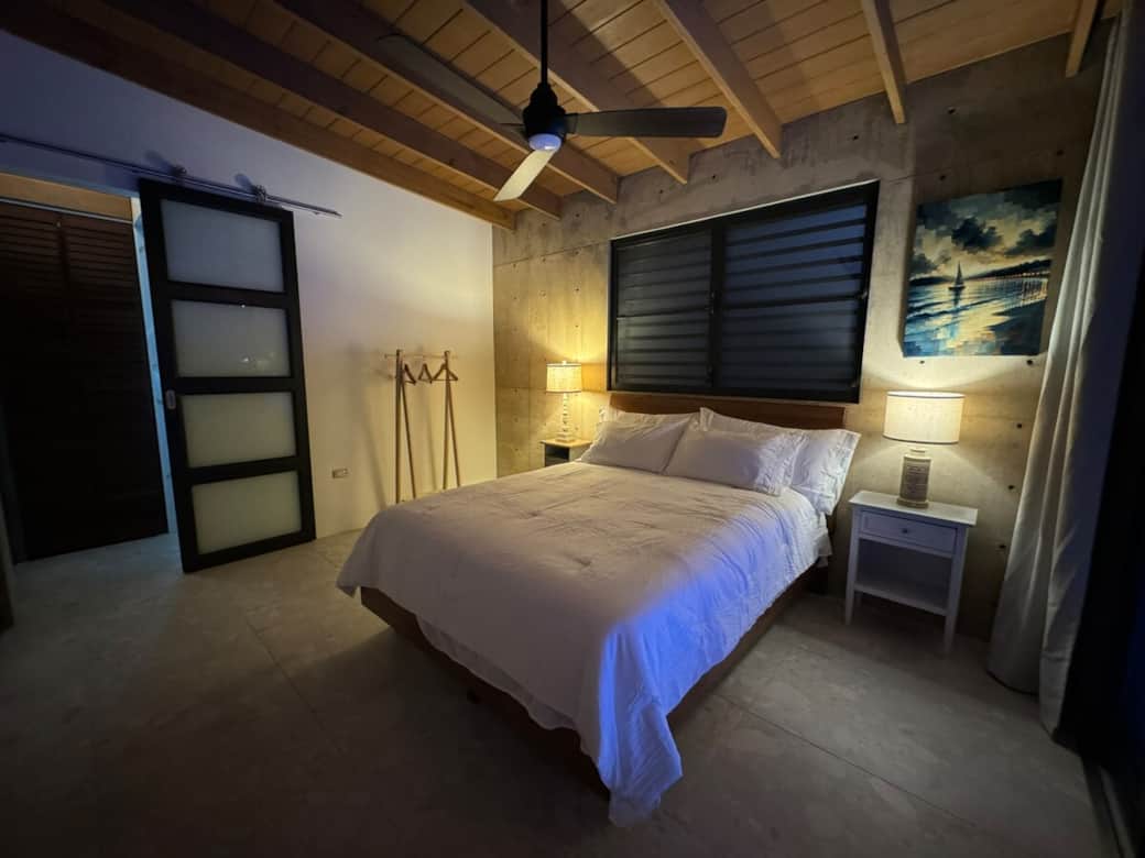 Welcome to Costa Solana in Camuy, Puerto Rico, a luxurious retreat near the Atlantic. Ideal for couples, this elegant property with a concrete structure and wooden roof accommodates up to four guests. It features a private heated pool on a scenic terrace, offering an intimate getaway just steps from the beach.
